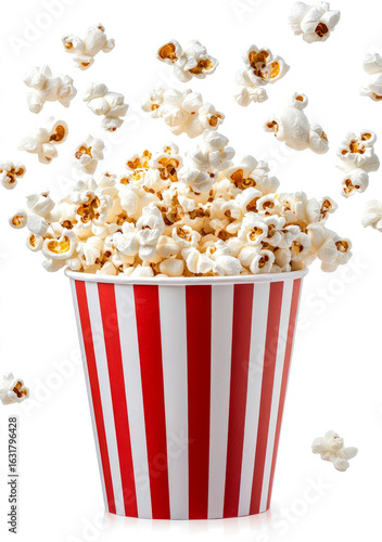 Popcorn in a red and white striped paper cup, isolated on a transparent background ,clipping path