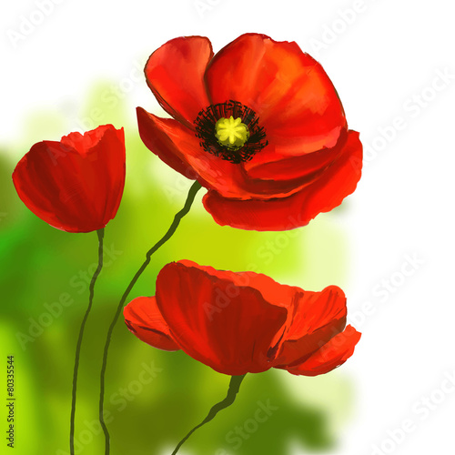 poppies vector illustration hand drawn painted watercolor