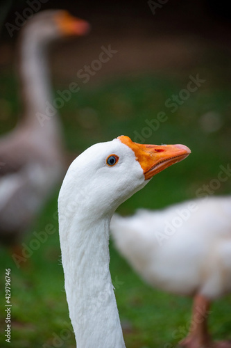portrait Duck in a park, duck in a zoo. Exotic goose in farm