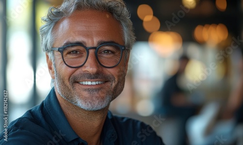 Portrait, happy or mature man in a meeting planning a branding, advertising or marketing strategy with business people. Partnership, face or worker smiles with pride after a successful., Generative AI