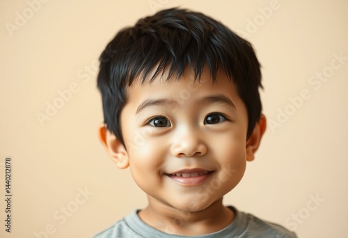 Portrait of a 3-year-old Asian boy with a gentle smile