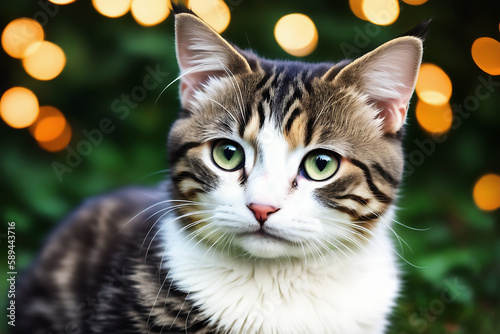 Portrait of a adorable cat, funny and cute face closeup, isolated on beautiful bokeh background, created with generative ai