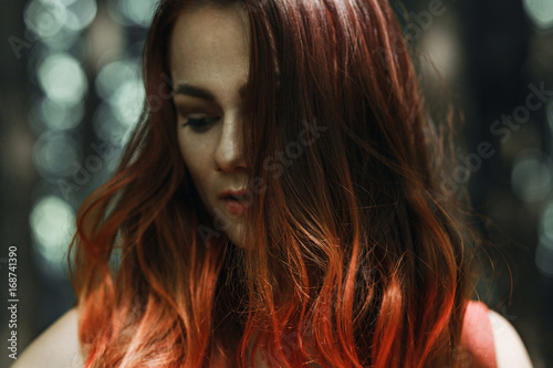 Portrait of a beautiful red-haired girl on a background of nature