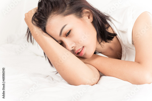 Portrait of a beautiful young woman in bed