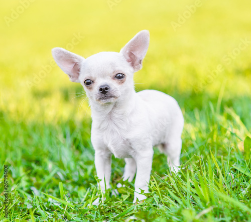Portrait of a chihuahua puppy on green summer grass