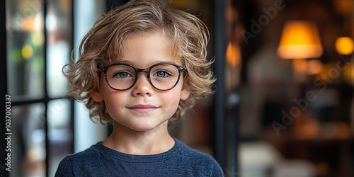 Portrait of a cute little boy with glasses