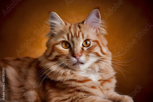 Portrait of a Ginger Cat with Stunning Amber Eyes on a Smooth Background