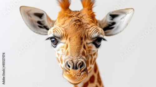 Portrait of a giraffe on a gray background, close-up