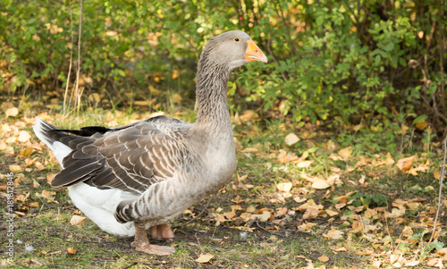 portrait of a goose in a park in autumn