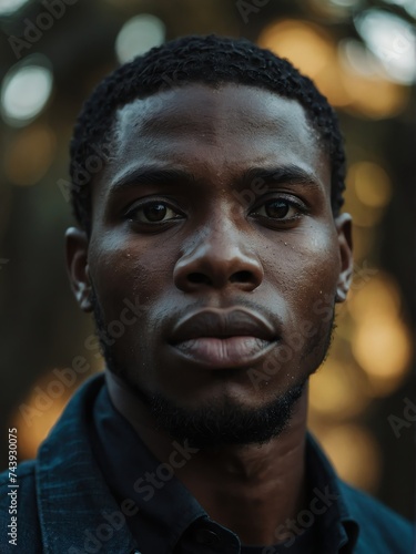 Portrait of a handsome young black african man staring at the camera from Generative AI