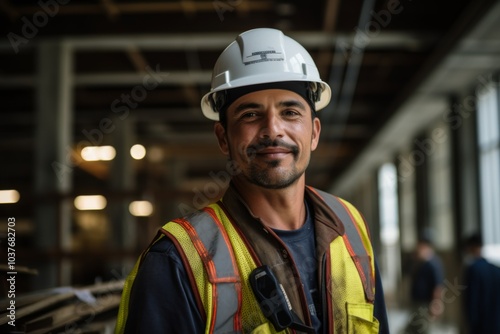 Portrait of a Hispanic construction worker inside of unfinished building