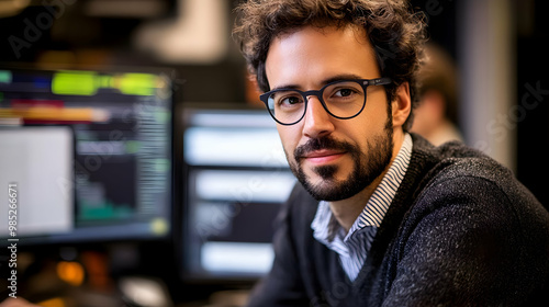 Portrait of a Man Wearing Glasses and a Sweater, Looking at the Camera, Realistic Image