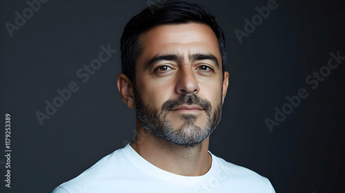 Portrait of a Man with a Beard Gazing Directly at the Camera Against a Dark Backdrop