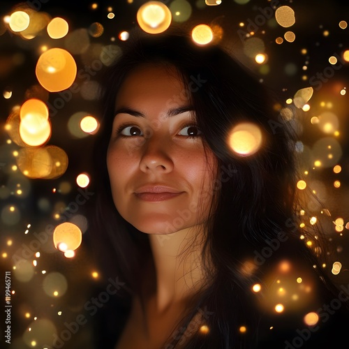 portrait of a person with abstract bokeh background and light effects