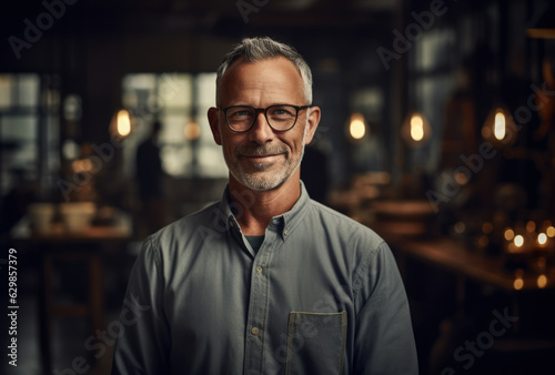 Portrait of a proud business owner in his business premises. Generative AI.