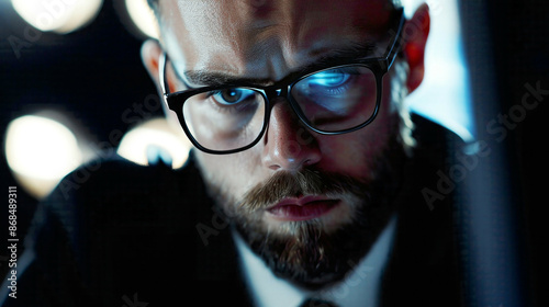 Portrait of a serious administrator overseeing cyber security for a large corporation