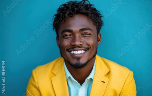 Portrait of a smiling, confident African American businessman in a suit, studio background