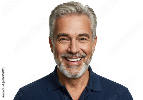 Portrait of a smiling, confident senior man with gray hair and a beard, isolated on transparent background