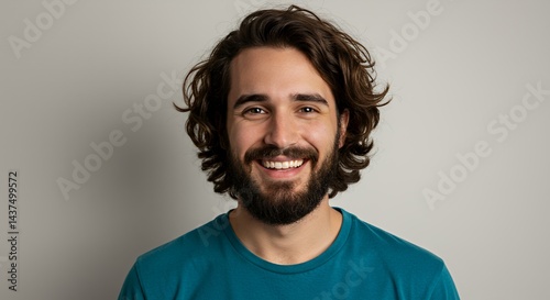 Portrait of a Smiling Man with Brown Curly Hair and Beard