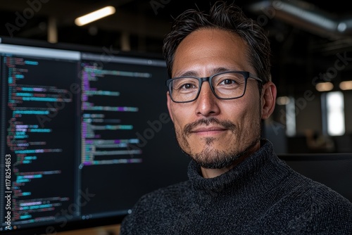 Portrait of a software engineer working on code