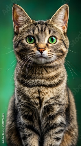 Portrait of a Tabby Cat with Green Eyes.