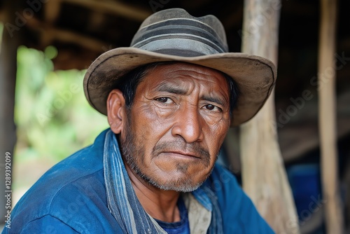 Portrait of a thoughtful man wearing a hat, showcasing deep emotions and wisdom in a rustic setting, reflecting cultural heritage and identity concept