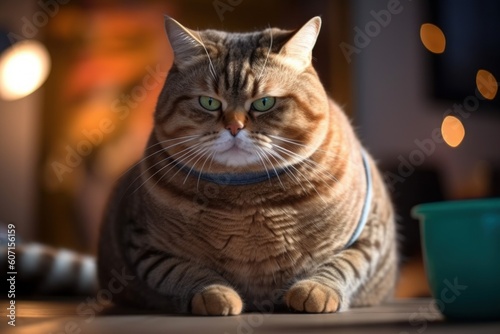 Portrait of a very beautiful plump fat cat in the office at work. AI generated, human enhanced