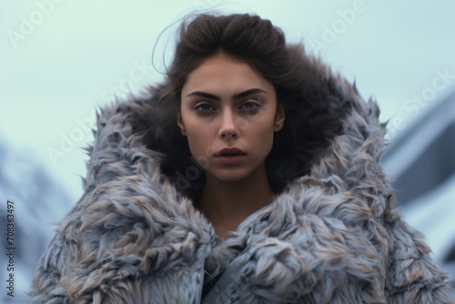 Portrait of a woman wearing a fur coat