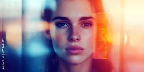 Portrait of a woman with blurred lights and colors in the background