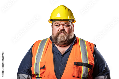 Portrait of construction worker Overweight man in engineer uniform on transparent background