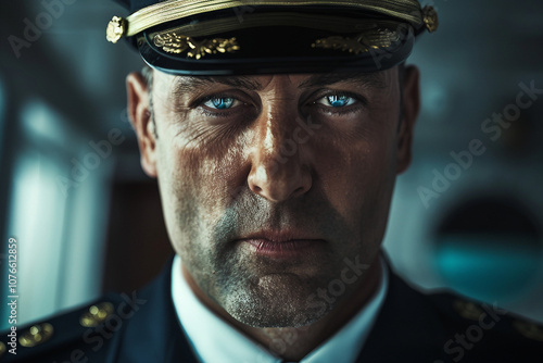 Portrait of handsome man navigating big ship cruise liner generative AI