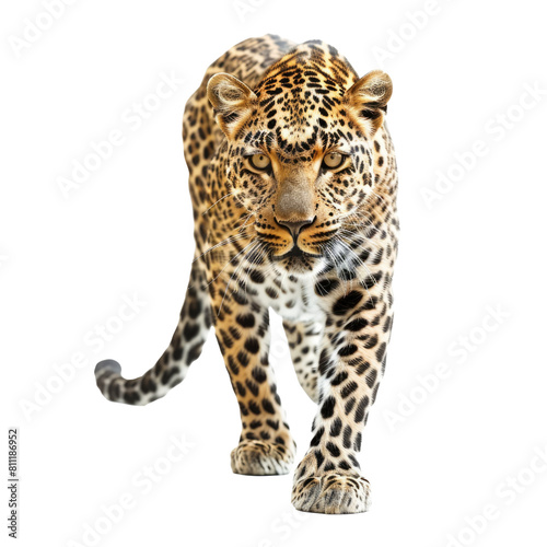 Portrait of leopard standing. Panthera pardus, against transparent background