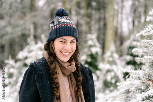 portrait of young woman in the snow
