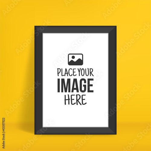 Portrait photo mockup on yellow wall, Empty interior picture frame for your design prints