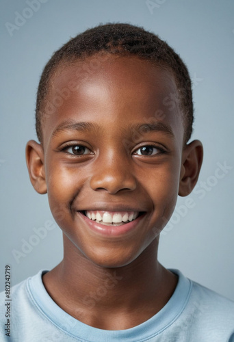 Portrait view of a regular happy smiling Botswana boy, ultra realistic, candid, social media, avatar image, plain solid background