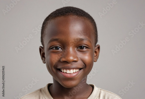 Portrait view of a regular happy smiling Central African Republic boy, ultra realistic, candid, social media, avatar image, plain solid background