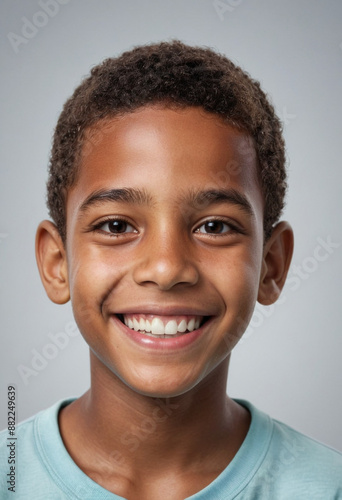 Portrait view of a regular happy smiling Cuba boy, ultra realistic, candid, social media, avatar image, plain solid background