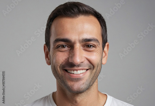 Portrait view of a regular happy smiling Cyprus man, ultra realistic, candid, social media, avatar image, plain solid background