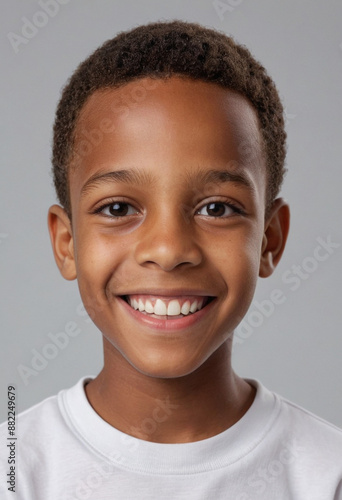 Portrait view of a regular happy smiling Dominica boy, ultra realistic, candid, social media, avatar image, plain solid background