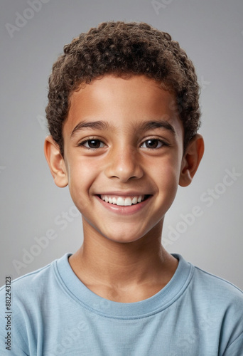 Portrait view of a regular happy smiling Egypt boy, ultra realistic, candid, social media, avatar image, plain solid background