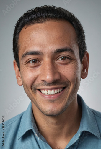 Portrait view of a regular happy smiling Guatemala man, ultra realistic, candid, social media, avatar image, plain solid background