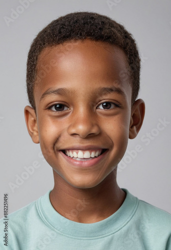 Portrait view of a regular happy smiling Guyana boy, ultra realistic, candid, social media, avatar image, plain solid background