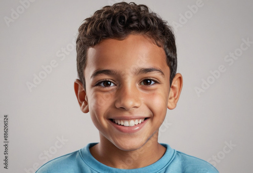 Portrait view of a regular happy smiling Morocco boy, ultra realistic, candid, social media, avatar image, plain solid background