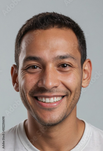 Portrait view of a regular happy smiling Palau man, ultra realistic, candid, social media, avatar image, plain solid background
