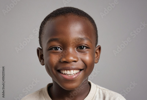 Portrait view of a regular happy smiling Republic of the Congo boy, ultra realistic, candid, social media, avatar image, plain solid background