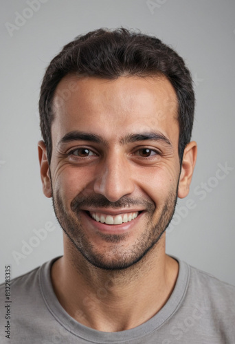 Portrait view of a regular happy smiling Syria man, ultra realistic, candid, social media, avatar image, plain solid background