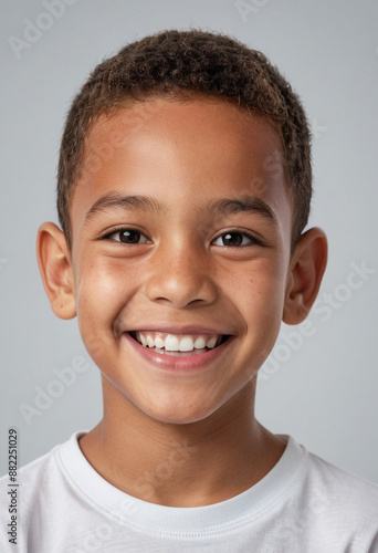 Portrait view of a regular happy smiling Tonga boy, ultra realistic, candid, social media, avatar image, plain solid background
