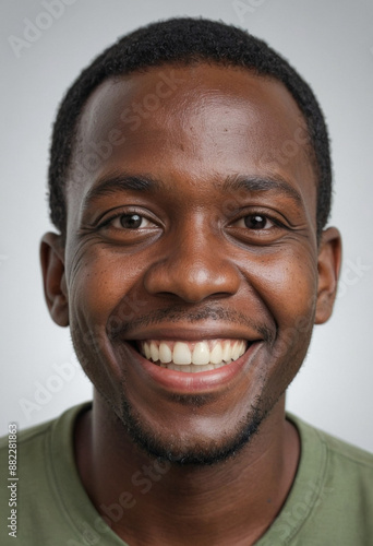 Portrait view of a regular happy smiling Zambia man, ultra realistic, candid, social media, avatar image, plain solid background