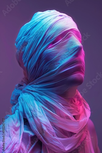 Portrait with Gauze Bandage on Purple Background with Turquoise and Purple Neon Gradient Theme