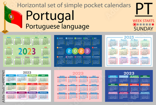Portuguese horizontal pocket calendar for 2023. Week starts Sunday